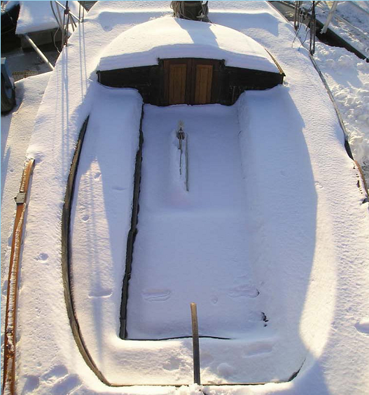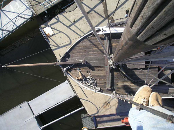 View of the Woody from the rigging after it was hauled out of the water. (2005):